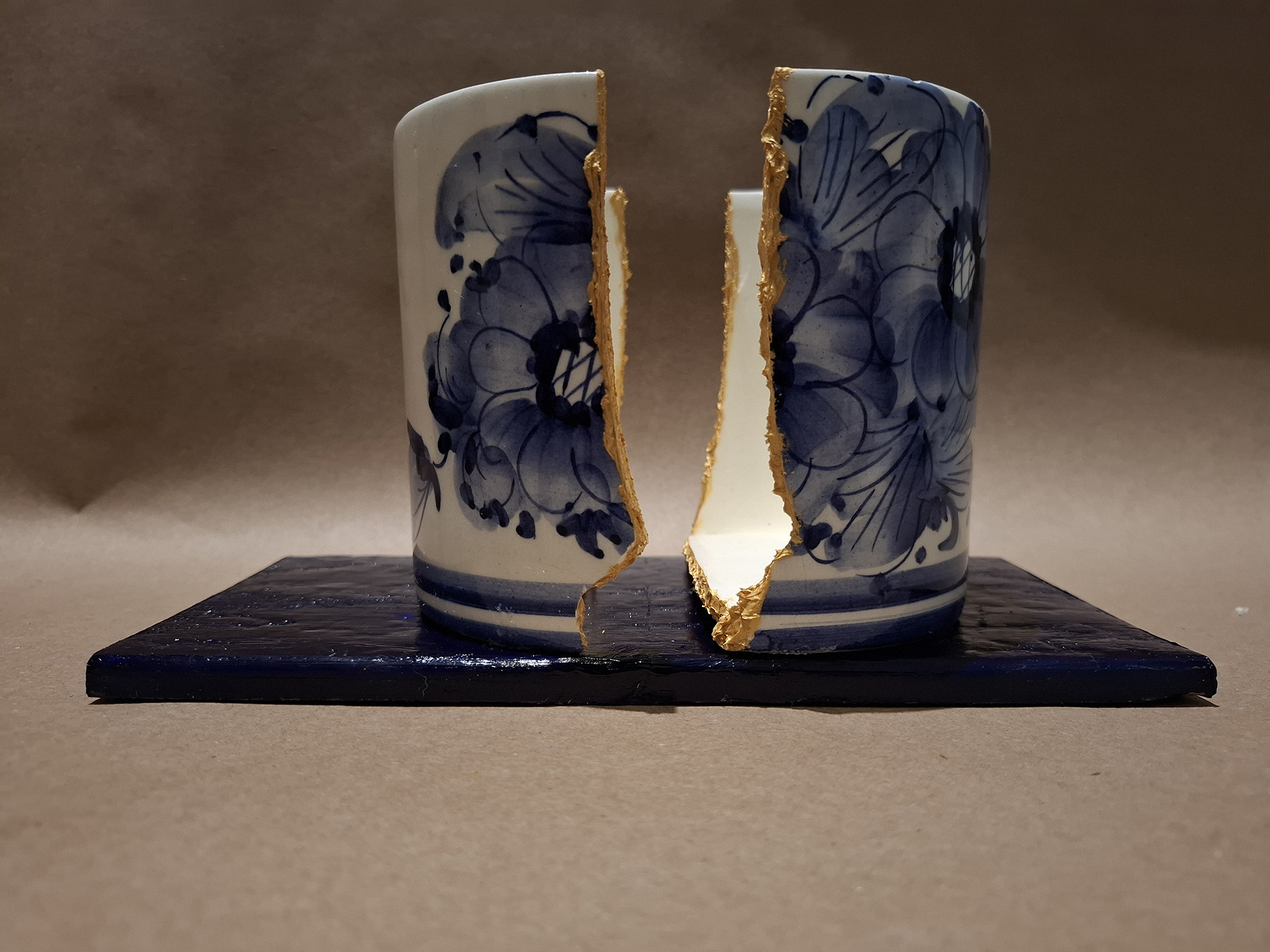 “Ancestralidade, memória e afeto em aparentes cacos, em restos de utensílios que perderam sua funcionalidade, mas que continuam existindo para contar a minha história. Fragmentos de mim materializa o encontro de três gerações e as marcas dessas mulheres, que prosseguiram em meio às violências sofridas, resultante do machismo que atravessa o tempo. A cor dourada ora exposta, ora colando a cerâmica, simboliza a potencia contida nessa linhagem, iluminando as sombras dessas trajetórias assim também como trazendo à tona, o valor do que é constituinte de nós mesmas”, MM.